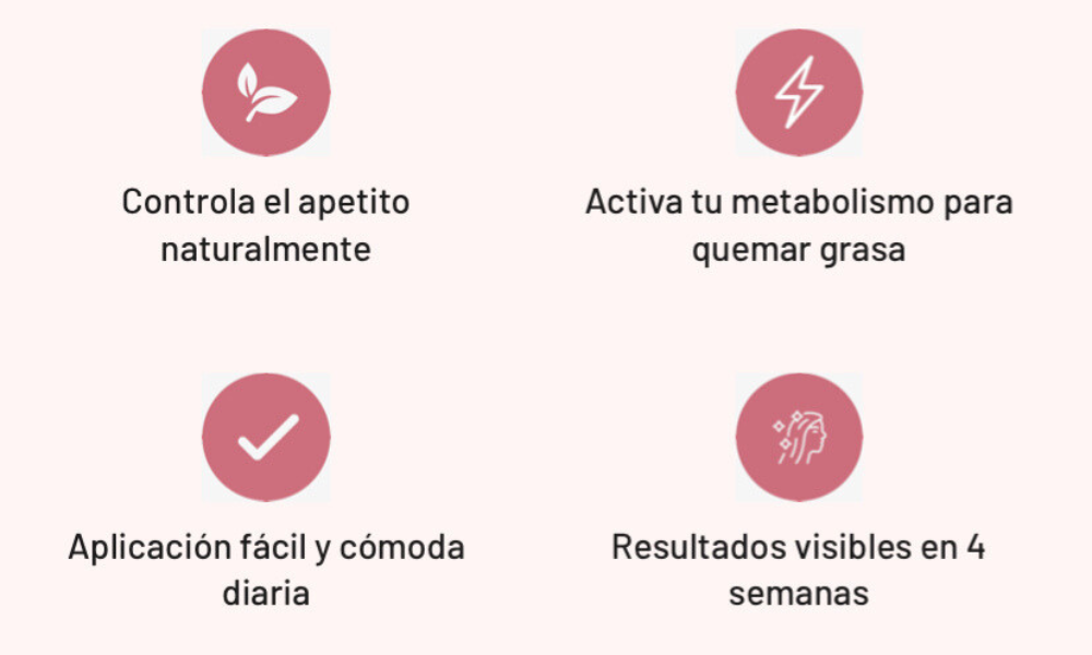 Una combinación única que ayuda a bloquear el hambre, reactivar el metabolismo y favorecer la pérdida de peso de forma gradual y segura, sin agujas, dietas extremas ni horas de gimnasio.